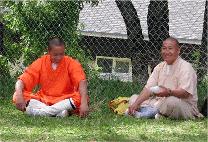 Le moine Shaolin Shi De Cheng et son disciple Shi Xing Shan à Autrans - Juillet 2004