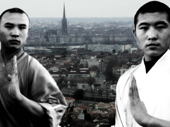 Sur l'image : les moines Shi Heng Liang et Shi Heng Shen du Temple de Shaolin en visite éclair à Bordeaux pour un stage de kung fu.